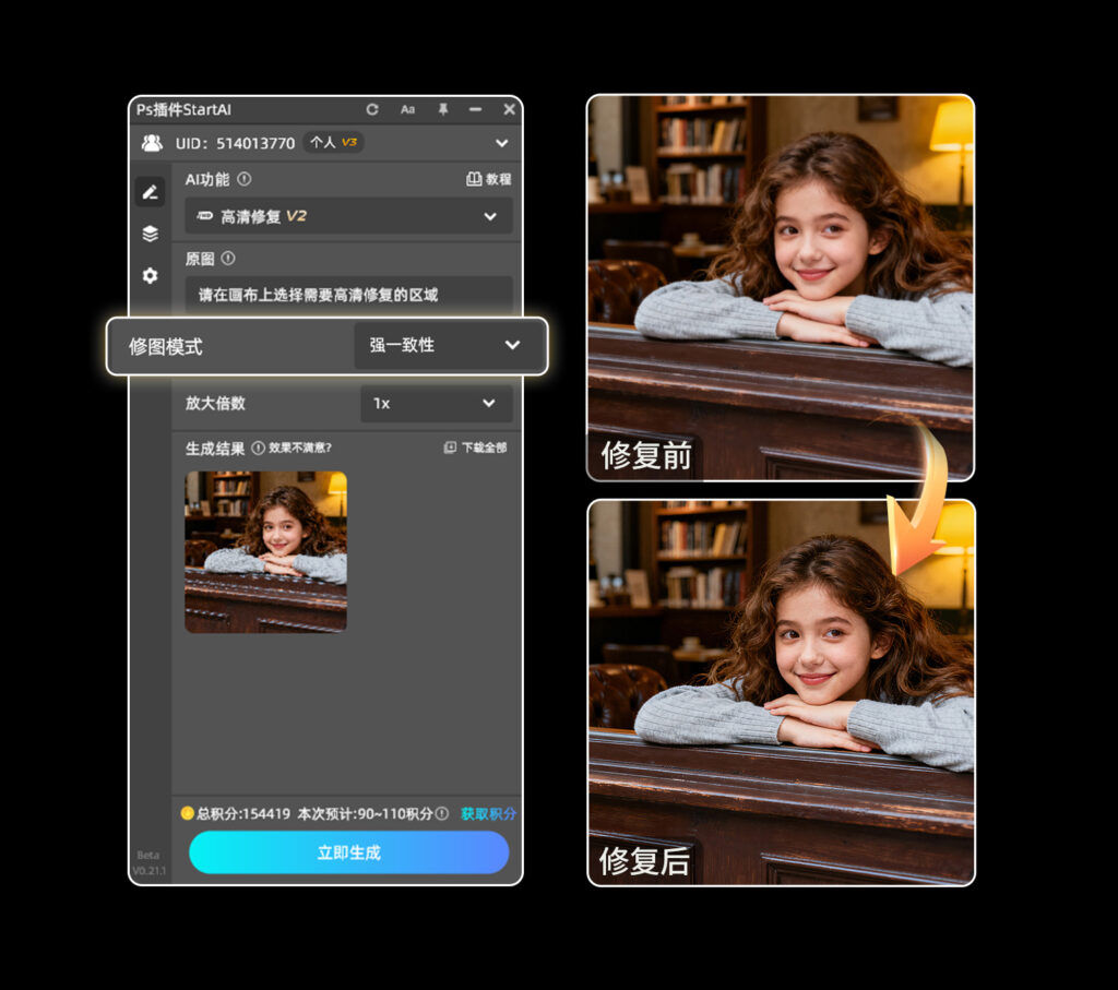 V2增加人像精修功能,一键拥有妈生好皮!欢迎大家点击下方链接进行体验!