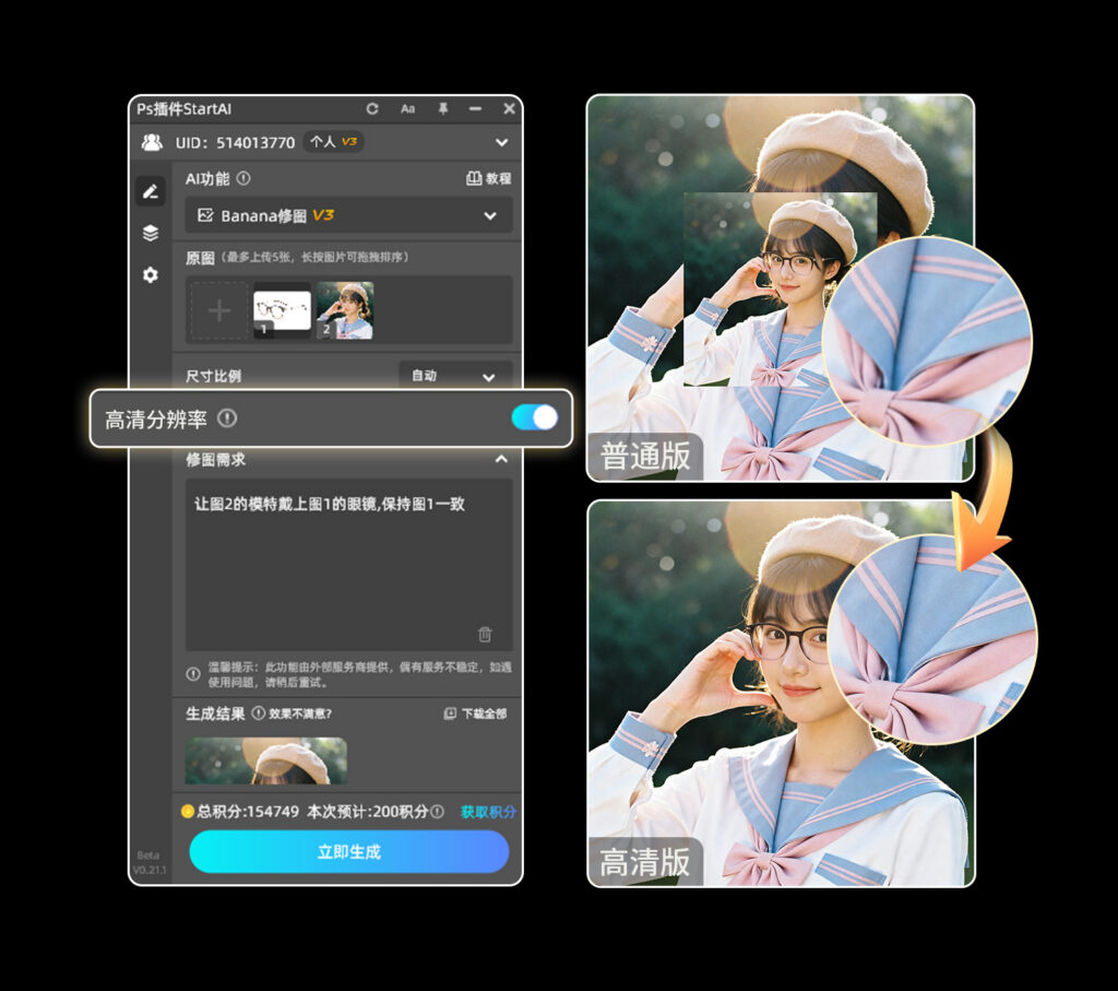 4、背景移除增加硬边缘开关控制(开启后减少边缘羽化效果,边缘更清晰)