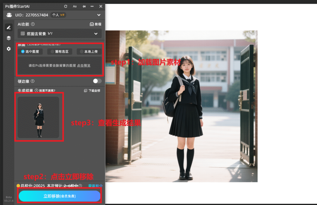 三、极速款方案:StartAI插件一键抠图,新手也能出专业效果