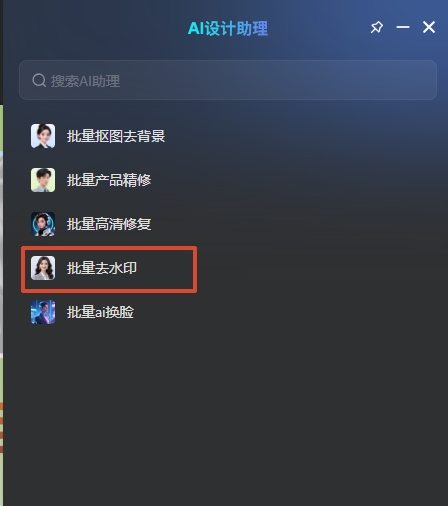 小贴士:StartAI插件支持批量去水印,只需将多张带水印图片放在同一个文件夹,然后打开StartAI的「AI设计助手」功能,然后选择「批量去水印」,即可快速完成所有图片去水印,大幅提升效率。