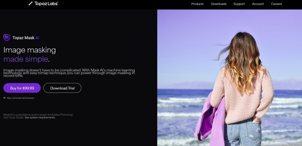 Topaz Mask AI是专业级Ps抠图插件,主打“高精度+手动微调”,适配Ps全版本,针对商业修图场景做了专项优化,稳定性强,无卡顿、崩溃问题,完美应对复杂抠图场景,是资深设计师、摄影后期从业者的首选工具。
