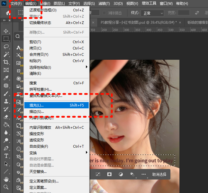 - 打开需要处理的图片,在左侧工具栏选择矩形选框工具,框选住水印区域(选框范围可略大于水印,保证修复完整性)。