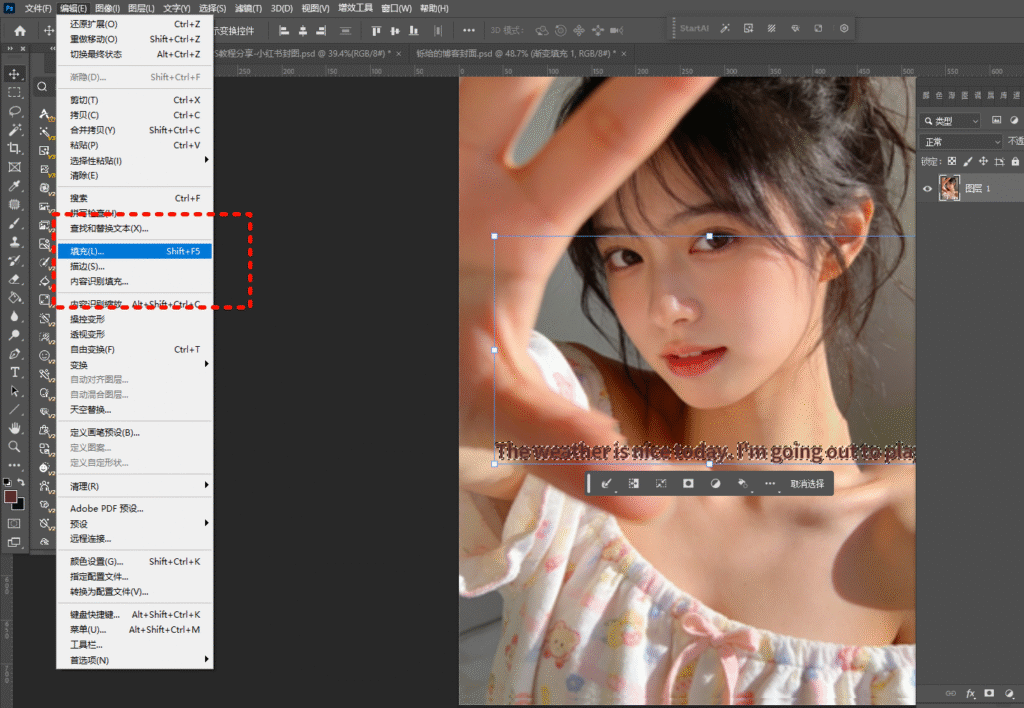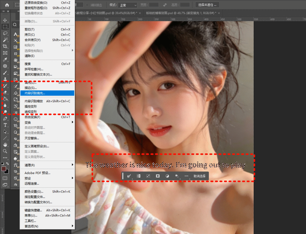 - PS 会自动分析水印周边的图像像素,用相似纹理和色彩填充选框区域。若一次填充有明显痕迹,可按