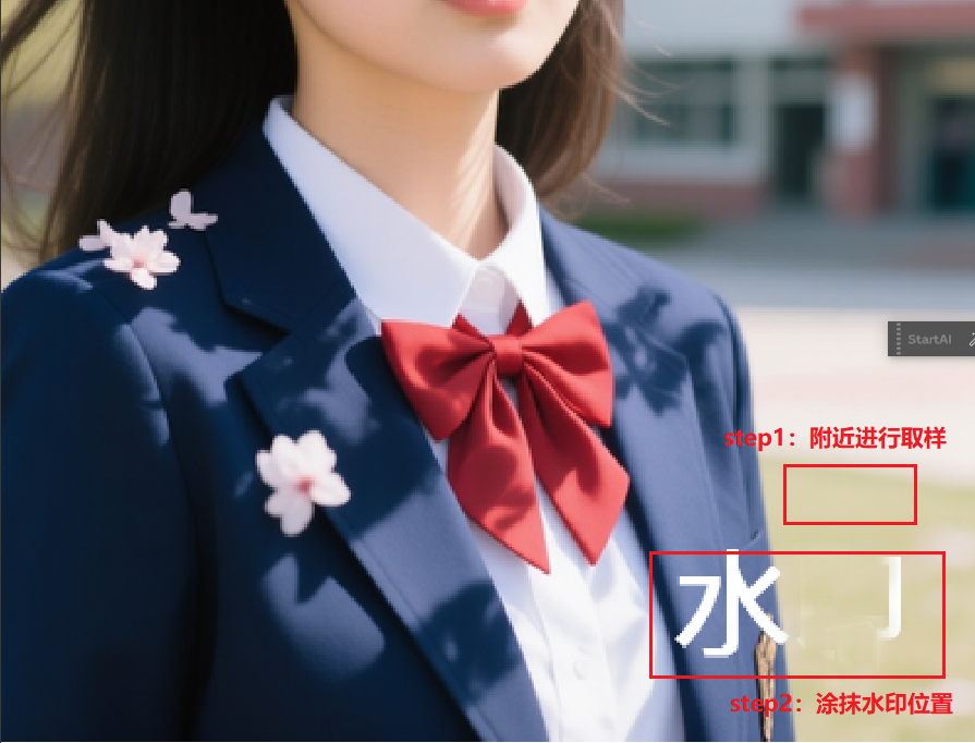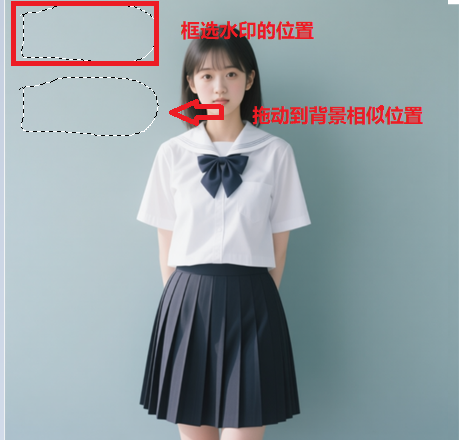 缺点: 只适合比较干净纯色的背景,在复杂背景上容易出现模糊或重复的纹理,显得不自然。