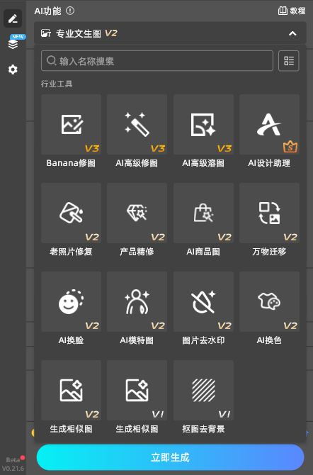 - 全功能覆盖,替代无死角:搭载Banana修图、AI高级溶图、文生图、AI扩图、智能移除等功能,完全替代Ps2025的生成式填充、神经滤镜等AI功能,甚至更为强大。