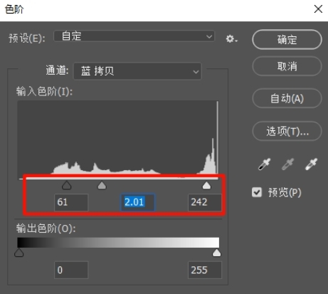 ④ 选中复制的通道,按Ctrl+L调出色阶