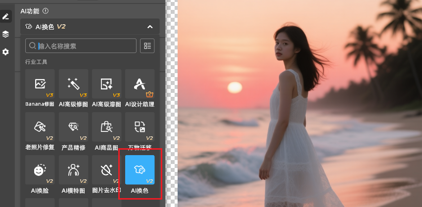 2、一键AI抠图:点击“启动AI换色”,AI会自动识别抠图,选择需要换色的地方,进入色彩调节页面;