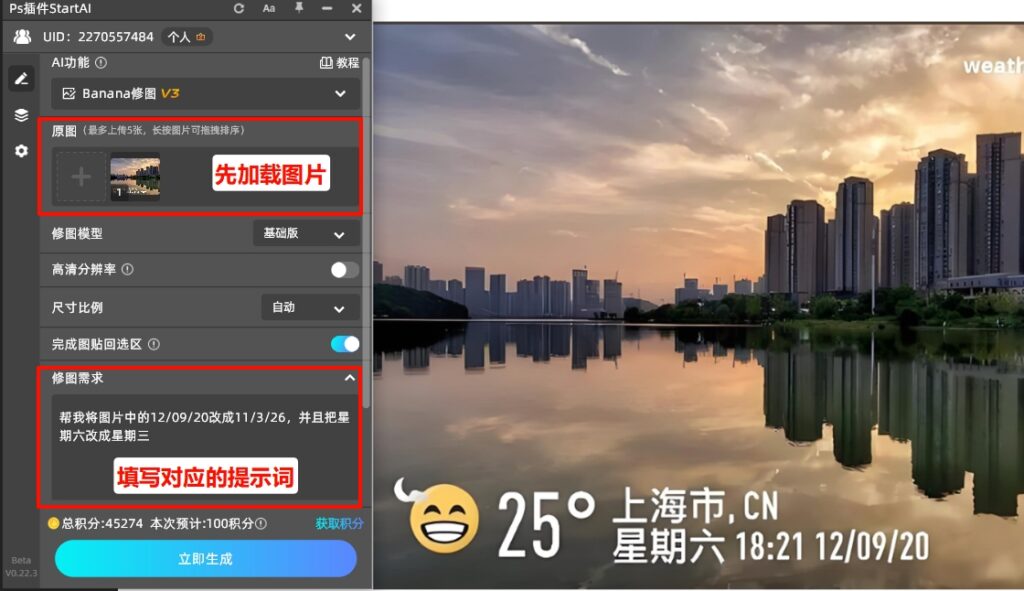 很多新手朋友发现,虽然PS可以修改时间水印,但是步骤十分繁琐,尤其是处理复杂背景,很容易留下横切,需要反复调整,耗时又费力。而使用StartAI插件,就可以彻底解决这个难题,不用复杂操作,就能轻松修改图片的文字、水印,不仅大幅度提升效率,还能保证无痕效果。