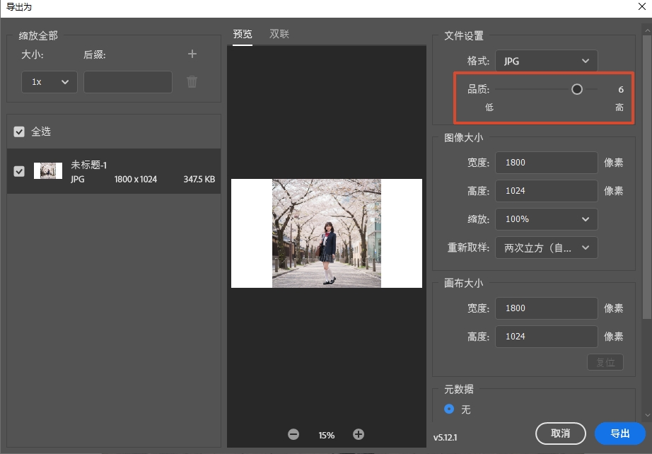 方法二:直接导出调整品质,适配本地存储需求