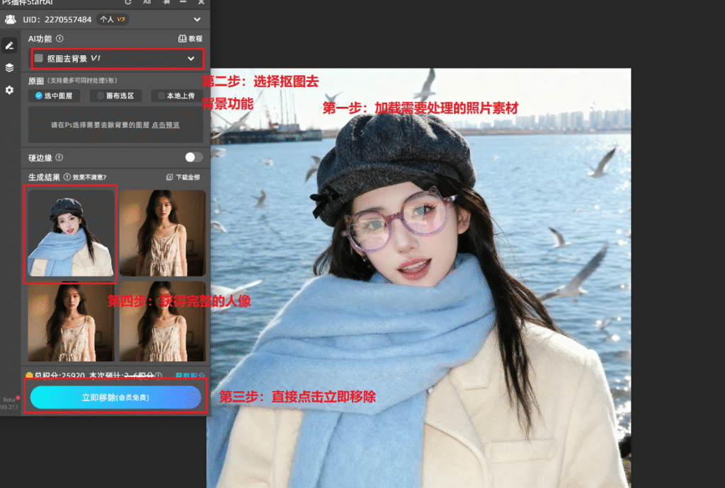 在日常设计、或者是一部分需要图片处理的场合中,难免需要对图片进行抠图换背景处理。但一提起PS抠图,不少人都会头疼,用原生的PS工具一点点描边,一张图要耗十几甚至几十分钟,新手还容易出现锚点错位、边缘生硬的问题。其实现在随着AI不断的发展,也有不少的Ps插件提供了一键抠图的功能,今天我们就来介绍StartAI的“抠图去背景”和“banana修图”两大功能,新手也能3分钟搞定精细抠图换背景,效率成倍提示。