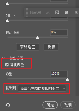 重要技巧: 处理深色背景上的浅色发丝时,勾选“净化颜色”可去除边缘杂色。