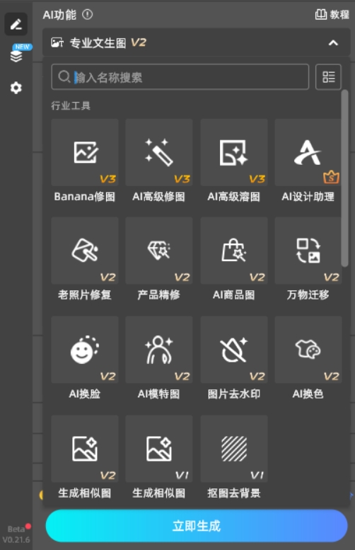 插件内置了抠图去背景、智能修图、图片去水印、文生图等多种功能,3秒就能生成效果,告别日常生活中的繁琐操作,原本需要半小时的手动操作,用它10秒内就能完成,大大提升设计效率,让你把更多精力放在创意构思上。