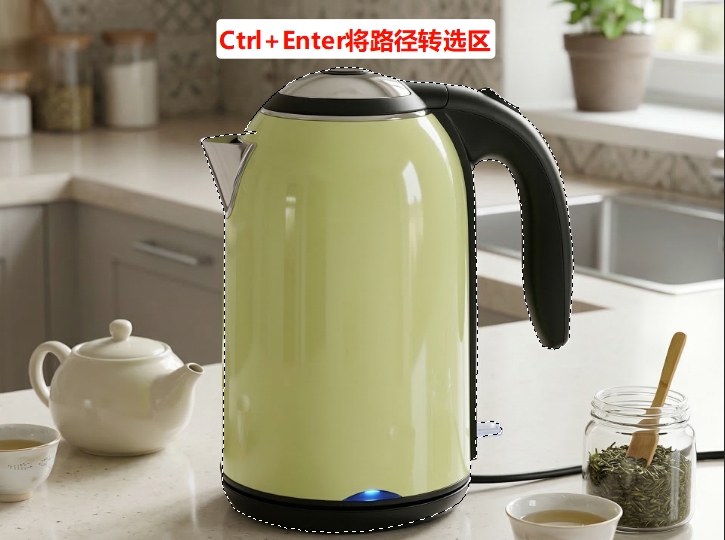 • 方法1(首选,最快):选中路径后,按下Ctrl+Enter,一键将闭合路径转化为选区,选区会以虚线显示,这是最常用的操作。
