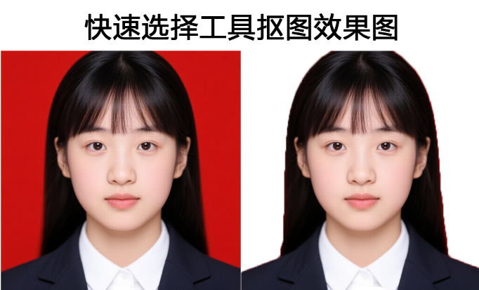 如果人物背景是纯色(比如白墙、蓝底证件照),或者背景和人物颜色反差大,用快速选择工具是最简单的。