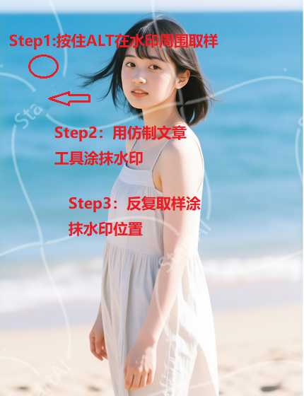 方法2:仿制图章工具手动仿制(适合少量图片)
