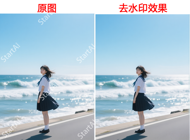 适合场景:水印密集、背景纹理复杂(如风景图、人物图、带图案背景)​