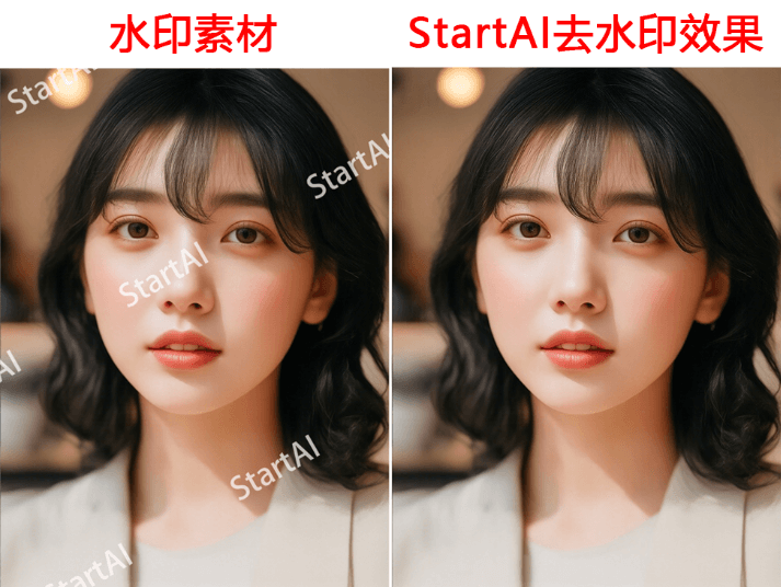 实测对比:传统方法处理覆盖人脸的全屏水印平均需要15-20分钟,而StartAI只需10秒,且处理后的面部细节更自然,没有色块断层。