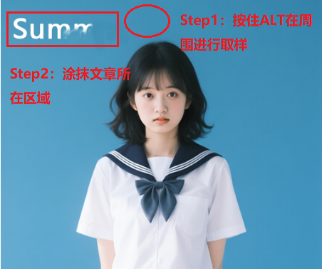 2、按住Alt键在干净区域取样,然后涂抹水印区域