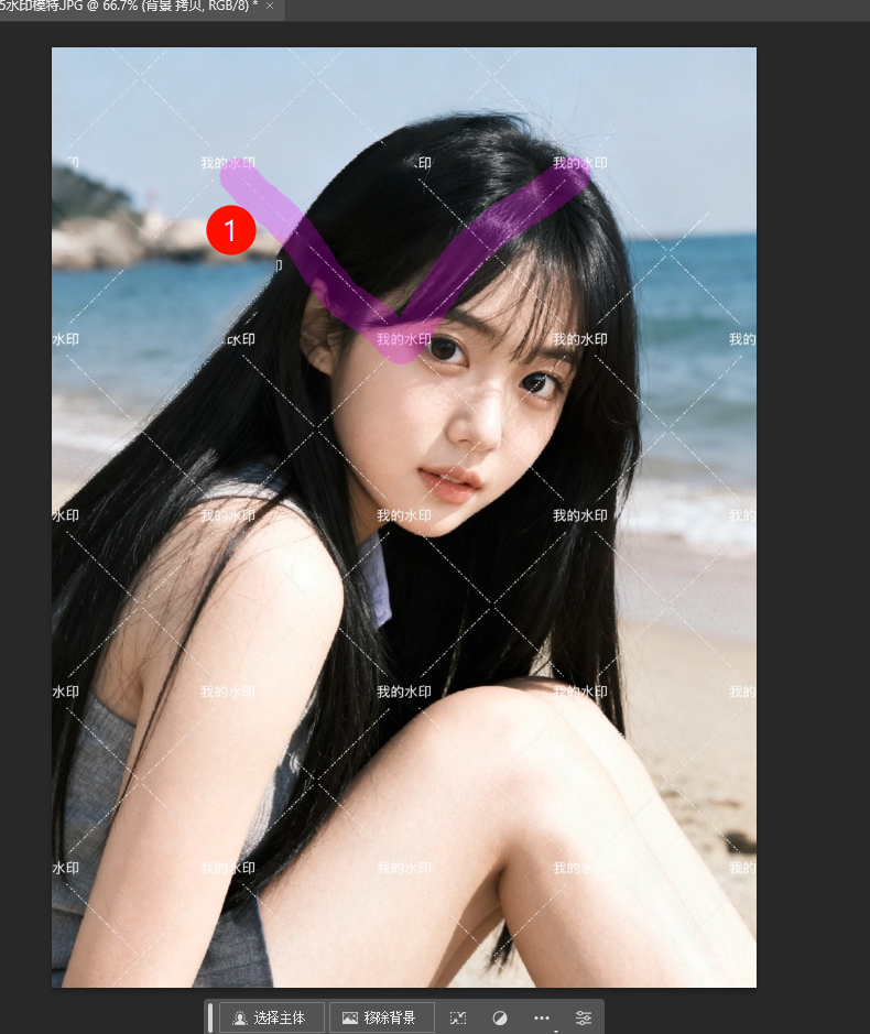 适合情况:水印分散排列(比如间隔的文字水印)、背景是纯色 / 渐变 / 简单纹理(无复杂图案)