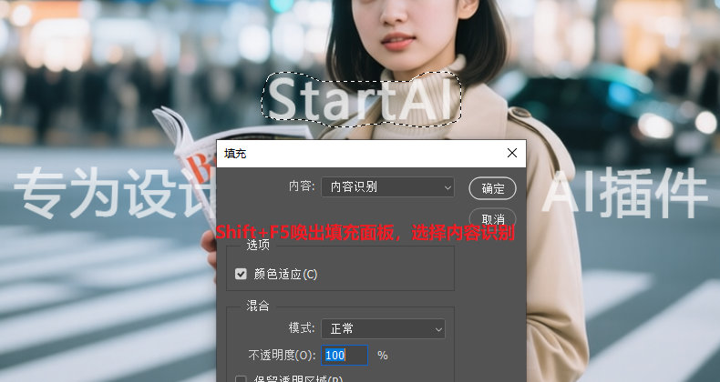 当面对大面积、复杂背景水印时,手动操作耗时耗力。startAI作为Photoshop智能插件,提供了革命性的解决方案。