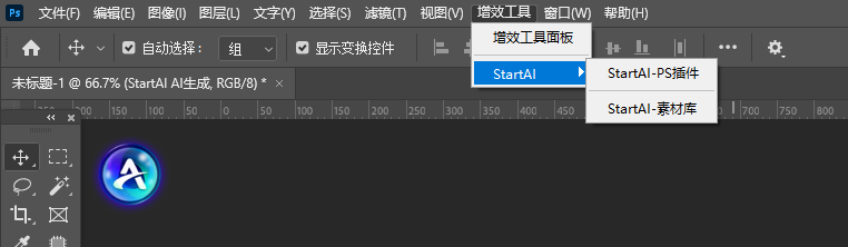 4. 启用插件:安装完成后打开Photoshop,在顶部菜单栏【窗口】-【扩展功能】中,即可找到StartAI插件,点击即可打开插件面板,登录账号后就能直接使用全部功能。