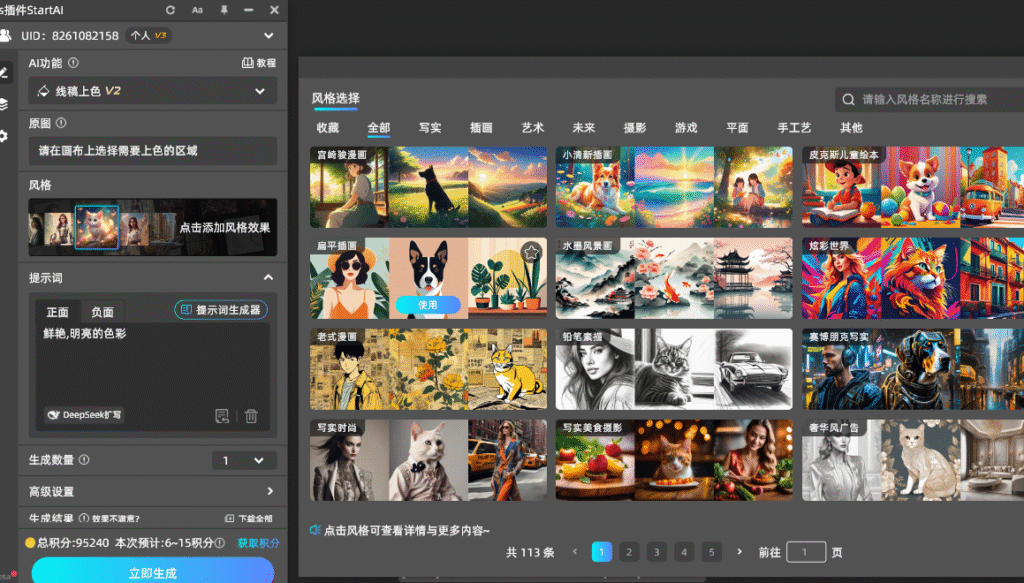 掌握了基础快捷键后,新手可能还是会遇到这些难题:复杂线稿勾选区太费时间、批量图片填色累到手酸、配色总是不好看。这时候试试 StartAI PS 插件,完全适配新手操作逻辑,让填色效率翻倍:
