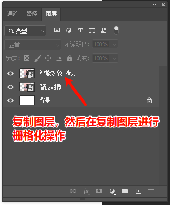 3、图层面板中会出现一个新的智能对象图层(名称后会标注“拷贝”);