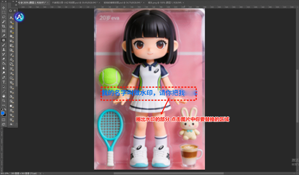 三、技巧 3:仿制图章工具,精准修复复杂背景水印