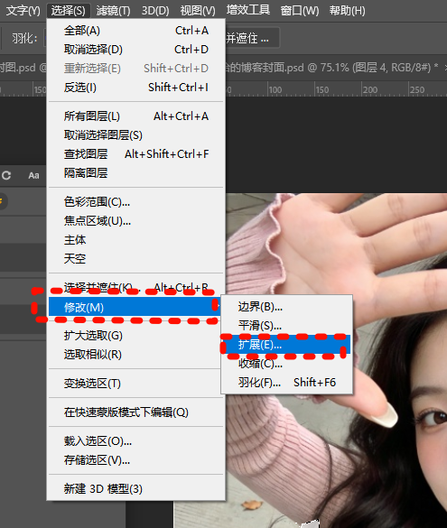 方法一:色彩识别+像素扩展+内容填充工具(适合简单背景水印)