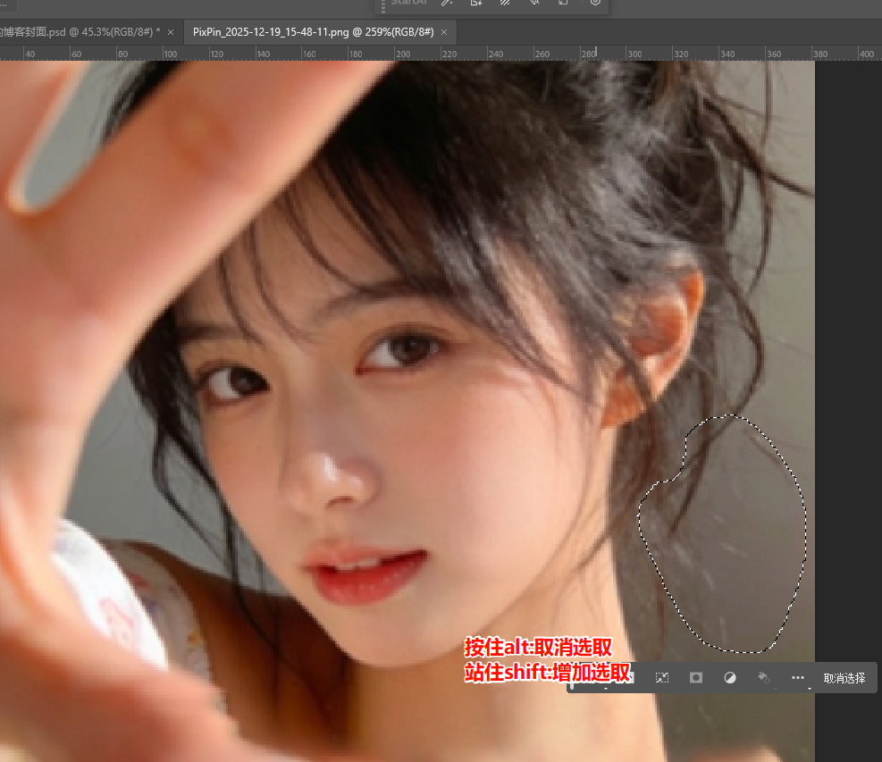 - 快速查看选区范围:按Ctrl+H(Windows)/Command+H(Mac)可隐藏/显示选区边缘的闪烁线,避免干扰视线,再次按快捷键即可恢复显示;