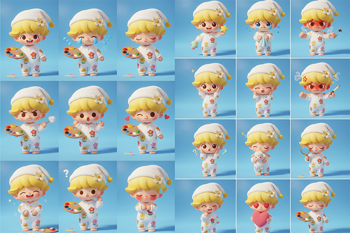 我第一次用的时候,把我“盲盒”IP形象从2D变成3D,只花了不到半小时,还顺手做了一套表情包,发到粉丝群里大家都说可爱!