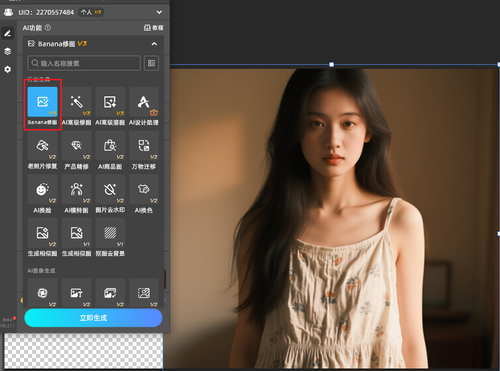 StartAI 是 AI 驱动的 PS 修图插件,其内置的 “Banana 修图” 功能专门针对衣物、布料修图优化,尤其擅长保留花纹细节,操作效率远超手动方法。